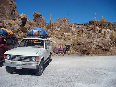 Ovšem absolutním vrcholem prvního dne našeho výletu je návštěva Isla Incahuasi - ostrova, který se jako Fata Morgana najednou vynořil ze solné planiny. Procházka mezi třímetrovými kaktusy je skutečně nezapomenutelná, určitě se vyplatí obětovat 15Bs. vstupného.