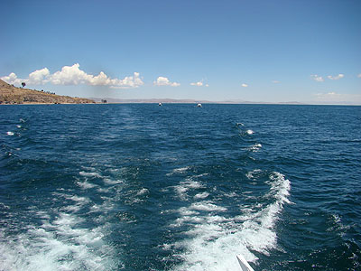 Naše další plavba směřovala na ostrov Taquile. Vzhledem k tomu, že naše loď "uháněla" rychlostí 13km/h, trvala nám cesta celé dvě hodiny.