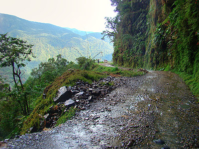 Ovšem co by to bylo za zážitek, kdybychom se nesvezli po staré původní šotolinové cestě a tak z nové asfaltky brzy odbočujeme. Je k neuvěření, že tato polňačka byla ještě donedávna hlavní dopravní tepnou spojující La Paz s nížinou oblastí Yungas!